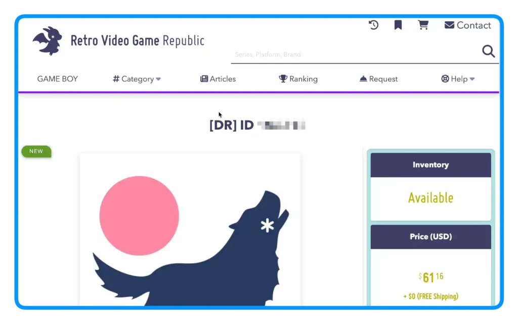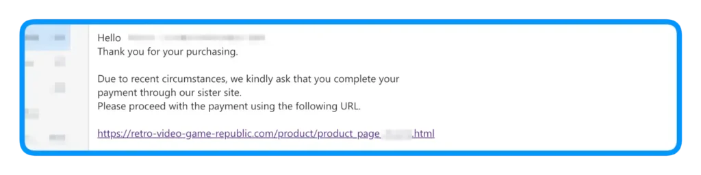 Ahí te indican que debes completar el pago en su “sister site” (sitio hermano), Retro Video Game Republic, junto con un enlace que te lleva a la página donde aparece generado el producto correspondiente a tu pedido; básicamente, los mangas que ordenaste en Doujin Republic.