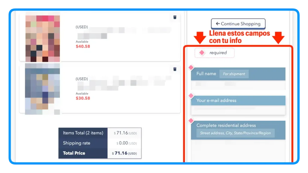 Una vez agregado el cupón al carrito, el proceso de compra es bastante sencillo: